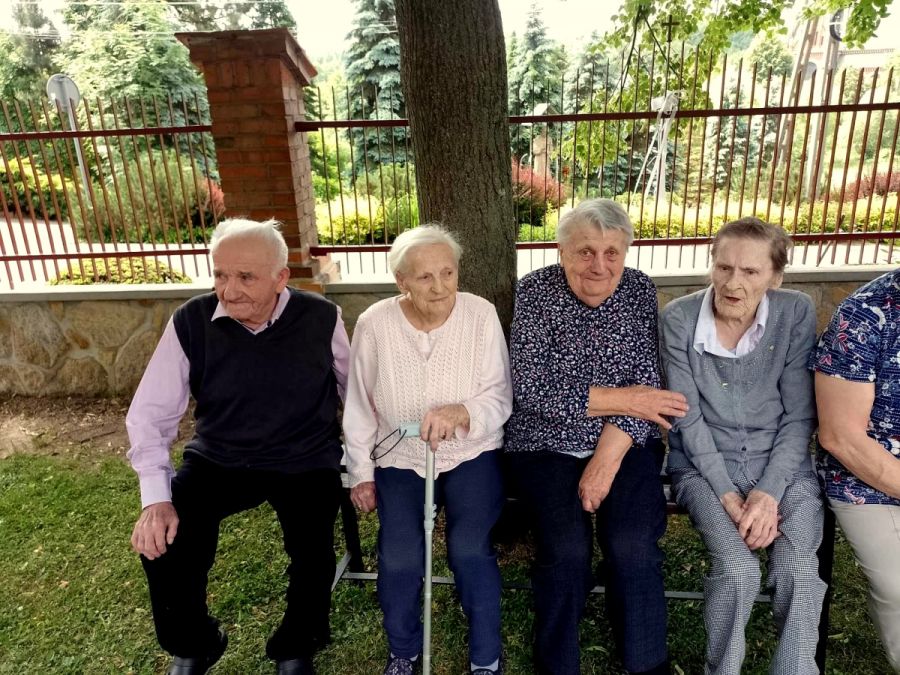 W uroczystość Bożego Ciała mieszkańcy DPS w Porąbce Uszewskiej po Mszy Świętej sprawowanej w kaplicy, udali się na procesję Bożego Ciała, podczas której wypraszali błogosławieństwo Boże i potrzebne łaski na każdy dzień.