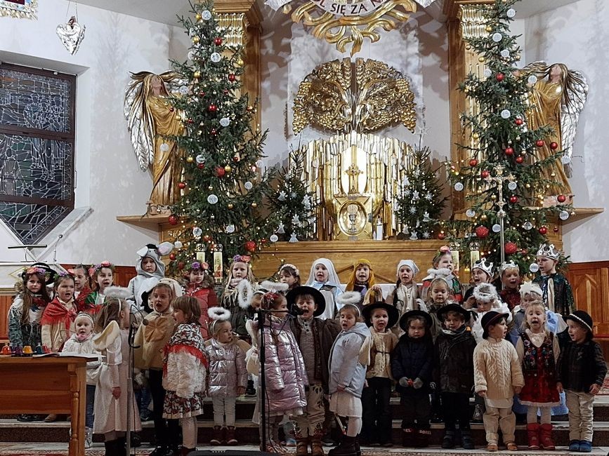 W niedzielę, 15-go stycznia odbył się w naszym tylickim sanktuarium organizowany corocznie „Koncert kolęd i pastorałek”. W tym niezwykłym wydarzeniu wzięli udział uczniowie i przedszkolaki z Centrum Edukacji Szkolnej, regionalny zespól z Tylicza „Pogranicze”, a także dzieci z naszej ochronki. Nasze dzielne przedszkolaki przybyłe wraz ze swoimi rodzicami i rodzeństwem licznie wypełniły świątynię. Podczas występu odważnie i radośnie zaprezentowały dwie skoczne pastorałki : „W drodze do stajenki”, „Cud Bożego narodzenia” oraz refleksyjną kołysankę „ Mój mały Baranku”. Ufamy, że wspólny śpiew przyczynił się do pielęgnowania i przekazywania pięknej tradycji śpiewu kolęd , a gromkie brawa zebranych parafian i gości zachęcą do dalszych występów na pożytek Boga i ludzi.