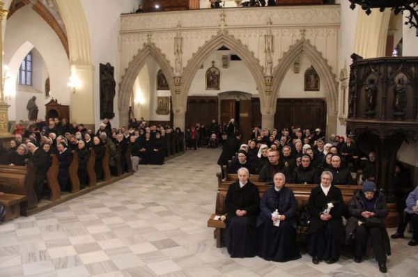 Od godziny 11-tej rozpoczęła się Adoracja Najświętszego Sakramentu, będąca przygotowaniem do przeżycia uroczystej Mszy Świętej z odnowieniem ślubów zakonnych. Uroczystej Eucharystii przewodniczył Biskup Tarnowski Andrzej Jeż, który podziękował wszystkim osobom konsekrowanym za obecność w Kościele oraz wierność obranej drodze.