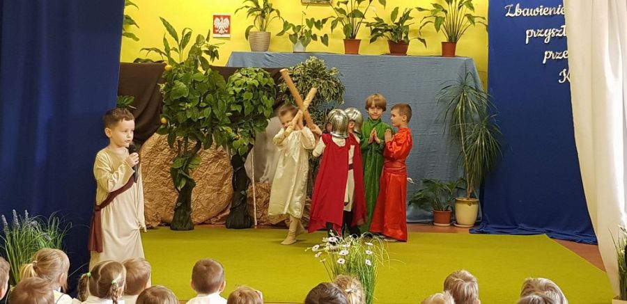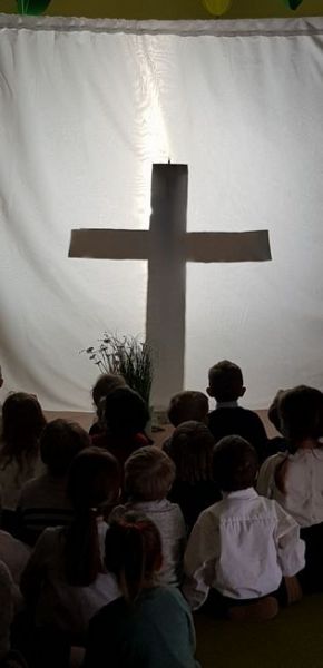 W tym dniu dzięki grupie starszaków ,,Słoneczek” i przygotowanym przez nich ,,Misterium Wielkanocnym’’ dzieci oraz zgromadzeniu goście przenieśli się do Jerozolimy, gdzie wspólnie przeżyli ostatnie chwile życia Jezusa: skazanie przez Piłata, drogę krzyżową, mękę, śmierć oraz Jego zmartwychwstanie. Piękne stroje, scenografia, tańce aniołów oraz elementy teatru cieni pozwoliły im zgłębić tajemnicę miłości Boga do ludzi. A słowa Jezusa, kończące przedstawienie:
