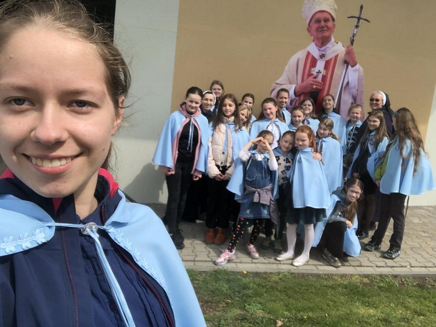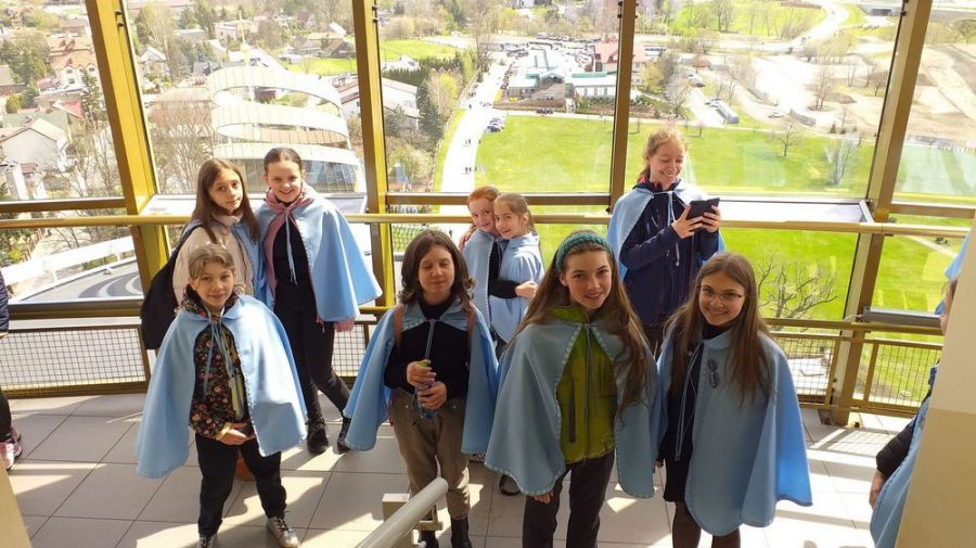 „W sobotę 15 kwietnia bardzo wczesnym rankiem jak na sobotę, starsze DSM-ki wraz z siostrami opiekunkami wybrały się na pielgrzymkę. Najpierw pociąg, a potem tramwaj zabrał nas do Łagiewnik, gdzie uczestniczyłyśmy we Mszy Świętej przed Cudownym Obrazem Pana Jezusa Miłosiernego. Kolejnym punktem pielgrzymowania była Bazylika Miłosierdzia Bożego. Tam siostra Grażyna ogłosiła konkurs. Trzeba było zapytać różnych ludzi i dowiedzieć się, co oznacza kształt nowej Bazyliki. Zdania były podzielone. Dla jednych jest to arka, która ratuje ludzi, dla innych kałamarz i pióro – symbol Sekretarki Bożego Miłosierdzia. Później obejrzałyśmy odwzorowany pokój św. siostry Faustyny i wspięłyśmy się na wieżę widokową (podobno 260 stopni). Następnie zjadłyśmy drugie śniadanie i poszłyśmy do Centrum św. Jana Pawła II, by pomodlić się za naszą Ojczyznę przy Jego relikwiach. Najbardziej podobały nam się mozaiki oraz witraże w kaplicy wieczystej adoracji. Dobrze było spotkać się z Panem Jezusem w ciszy. Zwieńczeniem wycieczki była pizza i szaleństwa w wesołym miasteczku. Pełne wrażeń wróciłyśmy do domu. Dziękujemy siostrze Sylwii, siostrze Grażynie i siostrze Katarzynie, że mogłyśmy w przeddzień niedzieli Miłosierdzia Bożego spędzić dzień właśnie w Łagiewnikach.