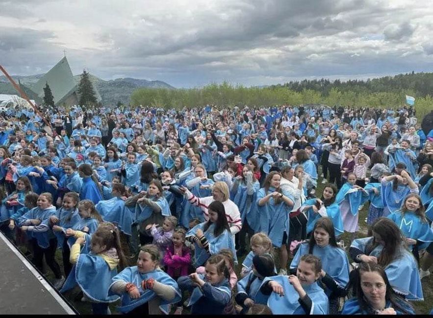 Aha, a wcześniej zobaczyliśmy piękną kapliczkę fatimską. Gdzie mogliśmy się pomodlić. A wiecie jak się nazywały dzieci z Fatimy? One się nazywały Łucja , Franciszek i Hiacynta. To właśnie one zobaczyły Maryję, która powiedziała im, żeby modliły się na różańcu za grzeszników.