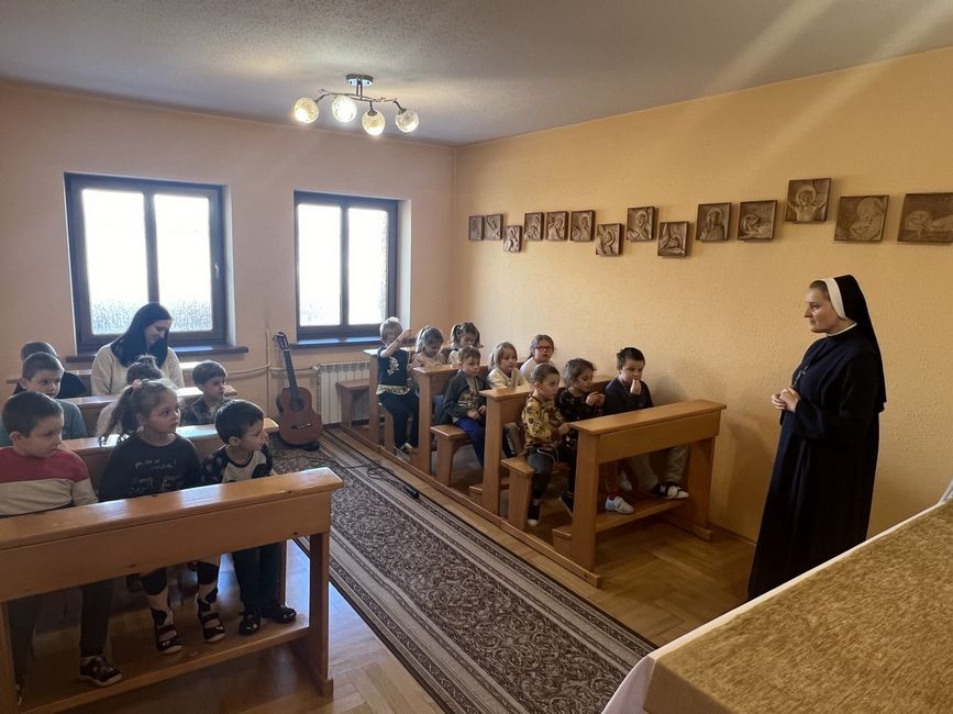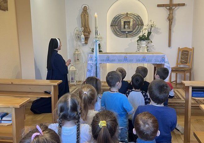 Uroczystość Niepokalanego Poczęcia Najświętszej Maryi Panny w dniu 8 grudnia skrywa w sobie wyjątkową „Godzinę Łaski dla świata”, rozpoczynającą się w samo południe. Tradycja „Godziny Łaski” sięga 1946 r., kiedy we Włoszech, u podnóża Alp najpierw w Montichiari, a w następnych latach w położonej nieco na uboczu dzielnicy Fontanelle, Matka Boża wielokrotnie ukazała się Pierinie Gilli, pielęgniarce z miejscowego szpitala. Matka Boża w objawieniach zachęcała, by każdego dnia 8 grudnia o godz. 12.00 udać się do Kościoła i tam się modlić. Jednak jeśli nie jest to możliwe, można także prosić o łaski w domu, w pracy – tam, gdzie akurat przebywamy. Odpowiadając na prośbę Maryi – 8.12.2023 r. o godz.12.00 w ochronkowej kaplicy przedszkolaki modląc się na różańcu powierzyły Matce Bożej swoje Rodziny, całą społeczność Ochronki oraz prosiły o łaski potrzebne dla całego świata. Recytowana modlitwa była przeplatana wdzięcznym, radosnym, dziecięcym śpiewem piosenek religijnych przy akompaniamencie gitary. O Maryjo bez grzechu pierworodnego poczęta módl się za nami, którzy się do Ciebie uciekamy.