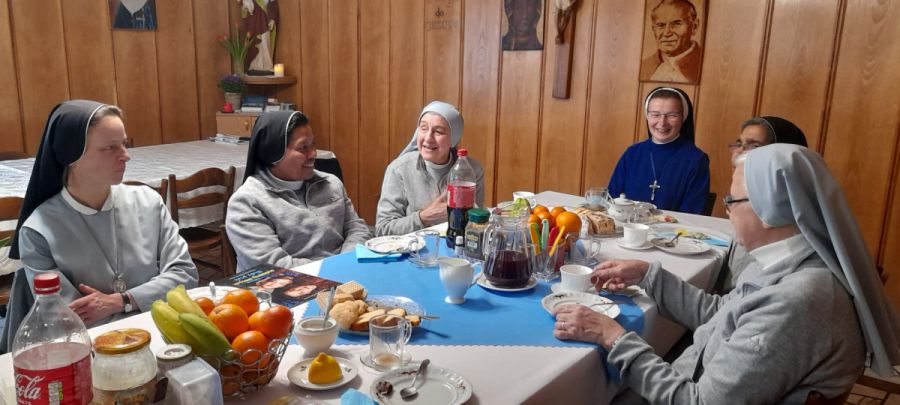 W niedzielę 11 lutego wspólnotę Domu Prowincjalnego odwiedziło 5 sióstr ze Zgromadzenia Córki Miłości Służebnice Ubogich (popularnie nazywane Kanosjanki) z Gosławic. Siostry są wspólnotą wielonarodowościową: s. Gariela i s. Wiesława to Polki, siostra Mary pochodzi z Timoru, siostra Róża z Włoch, a siostra Rosemary pochodzi z Indii. W Gosławicach prowadzą dom rekolekcyjny.